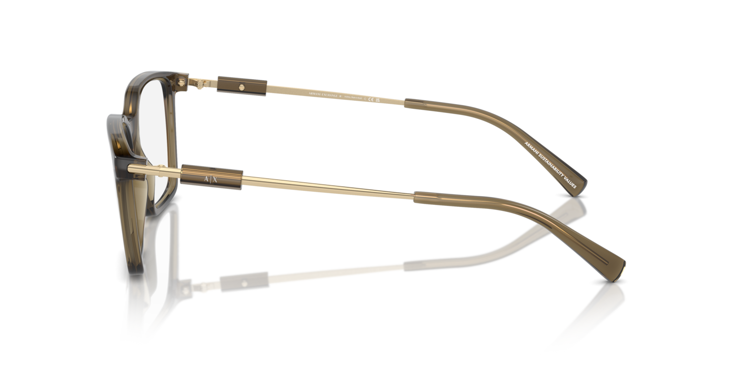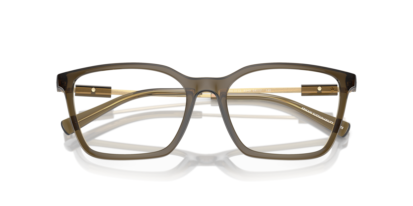 Elevate your fashion with Armani Exchange AX3113 optical glasses. The pillow shape and shiny transparent brown frame color create a unique and stylish look. The frame is designed to fit comfortably, ensuring optimal performance and versatility. These glasses are a versatile choice for those seeking both style and functionality. Available with prescription lenses.
