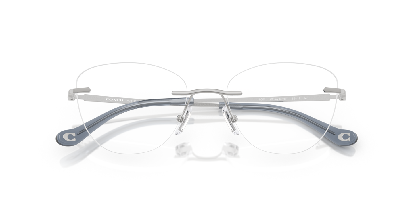 Elevate your fashion and vision standards with Coach HC5185. The polished, shiny silver metal frame in a cat eye shape adds a touch of glamour to any outfit. The black saddle bridge provides a comfortable fit, while the optical lenses ensure optimal clarity. These glasses are not only stylish but also practical. Available with prescription lenses.