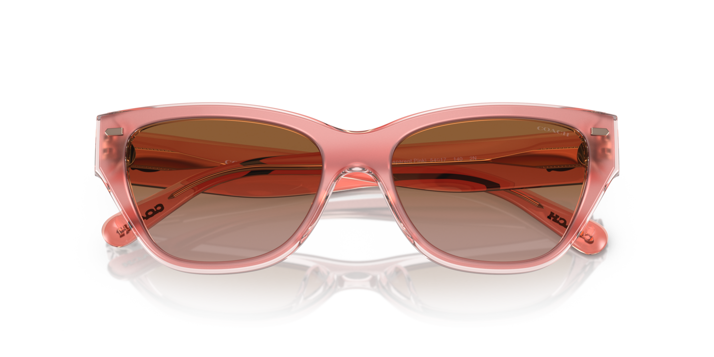 Elevate your fashion and performance standards with Coach CH570 sunglasses. The cat eye shape, crafted from durable acetate, adds a touch of sophistication to any look. The polished milky pink/transparent pink frame color finish exudes elegance, while the brown gradient lenses provide optimal clarity and sun protection. These shades are a versatile choice for everyday wear.