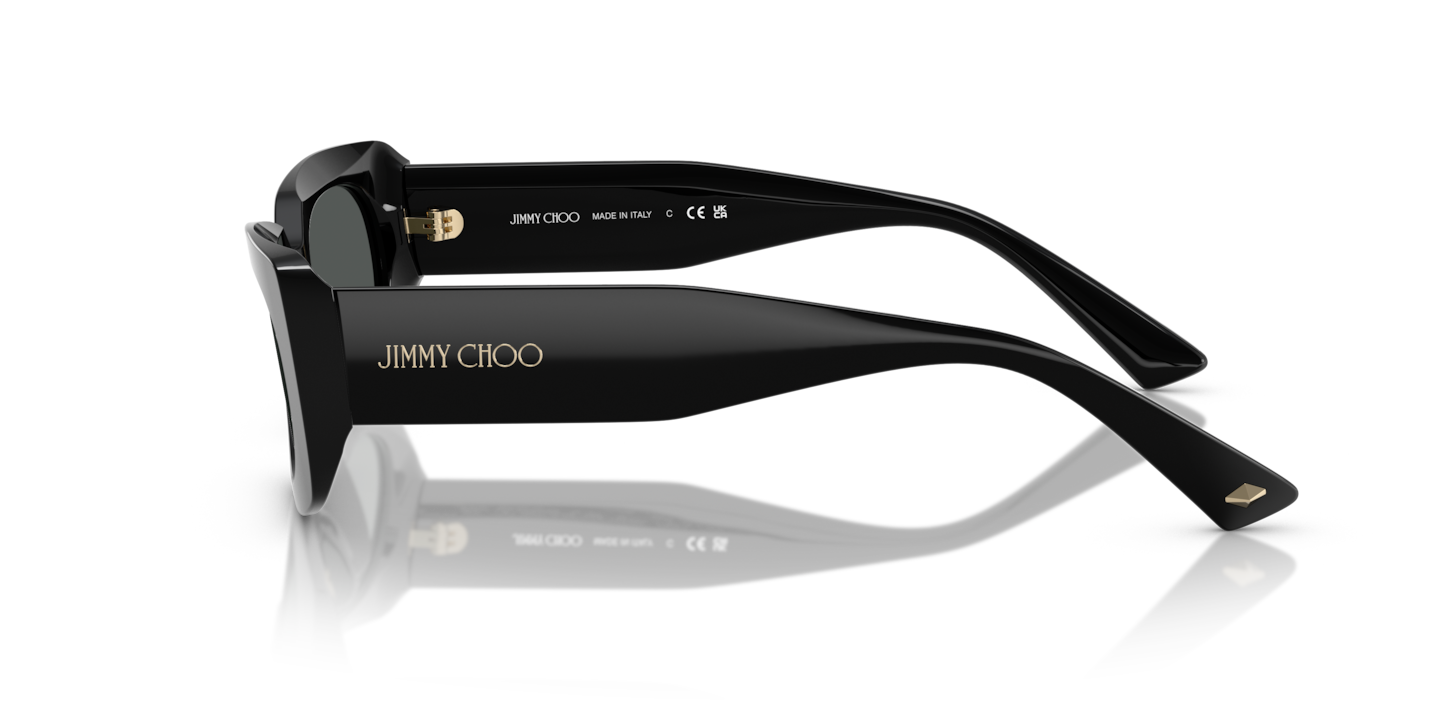 Embrace the unique synergy of style and optical functionality with Jimmy Choo JC5029U. The pillow shape, combined with a polished black acetate frame, creates a bold and sophisticated look. The solid dark grey lenses add a touch of mystery to the overall design. These shades are not only stylish but also versatile. Available with prescription lenses.