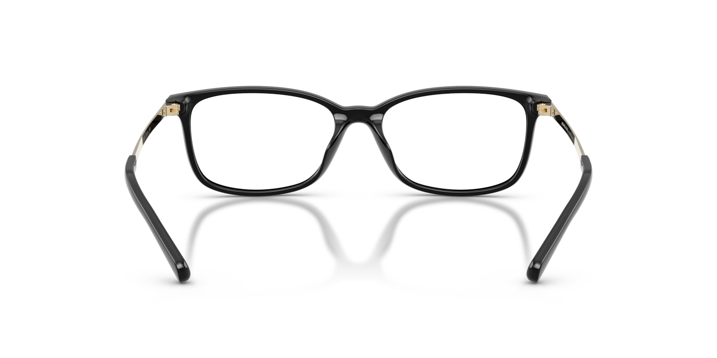 Experience the epitome of luxury with Michael Kors Telluride eyeglasses. These rectangle-shaped frames feature a polished black finish, offering a sleek and sophisticated look. Crafted from durable material, these glasses are designed to last. The timeless design makes these shades a versatile addition to any wardrobe. Embrace sophistication and elegance with Michael Kors Telluride eyewear. Available with prescription lenses.