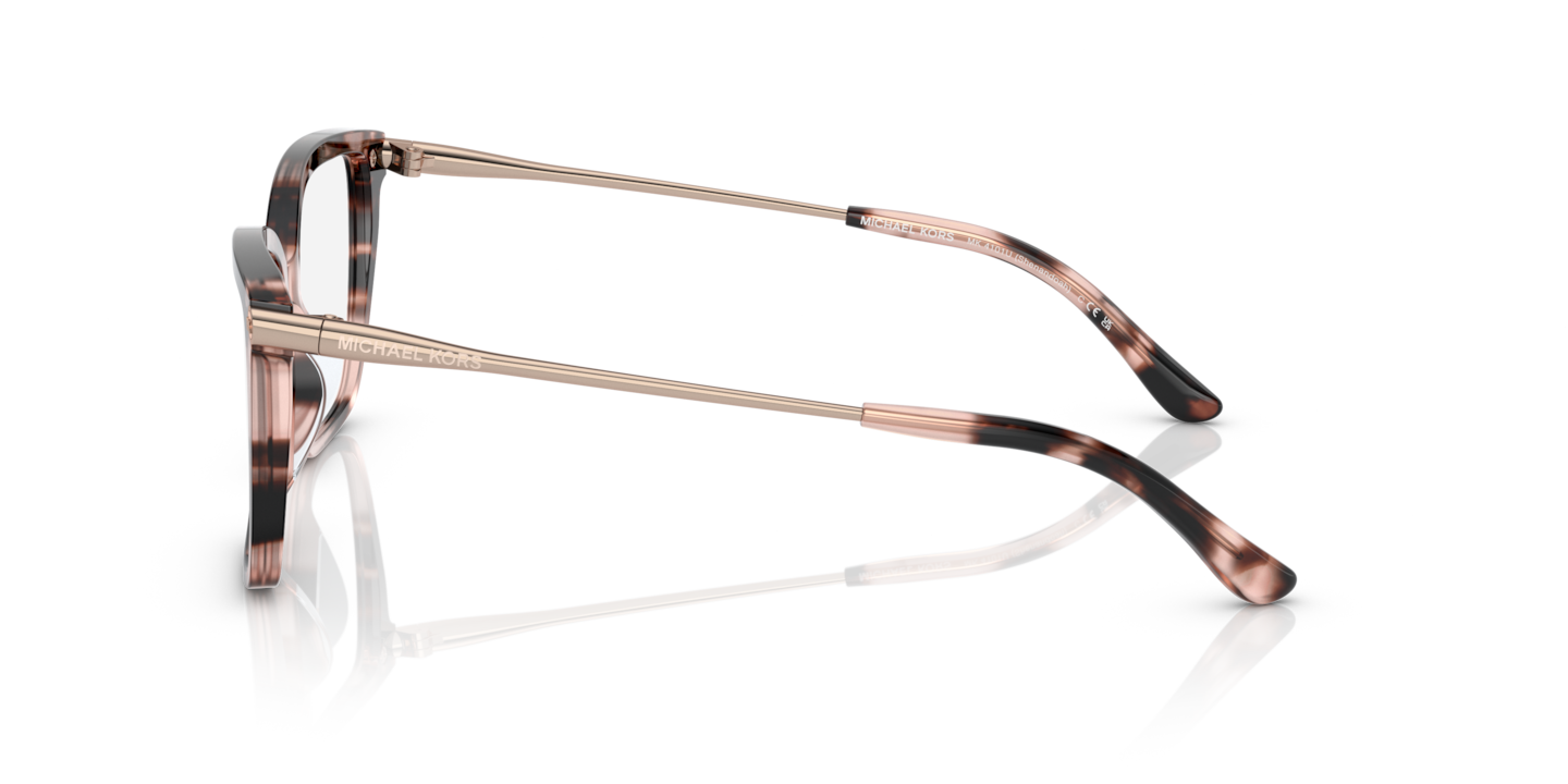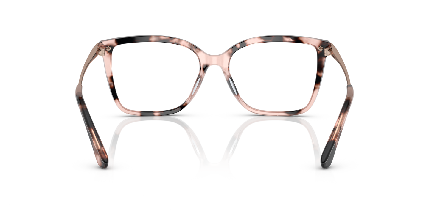 Embrace your individuality with Michael Kors Shenandoah eyeglasses. Crafted from durable acetate, these square-shaped frames feature a polished finish in a chic pink tortoise color, offering a modern twist to the timeless style. The black and white contrast adds a touch of sophistication, making these glasses an ideal choice for everyday wear. Available with prescription lenses.