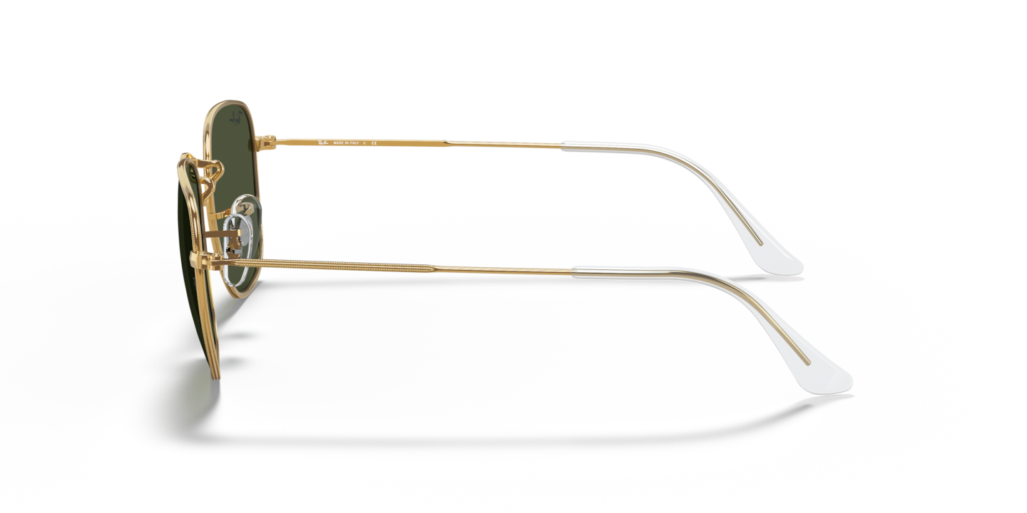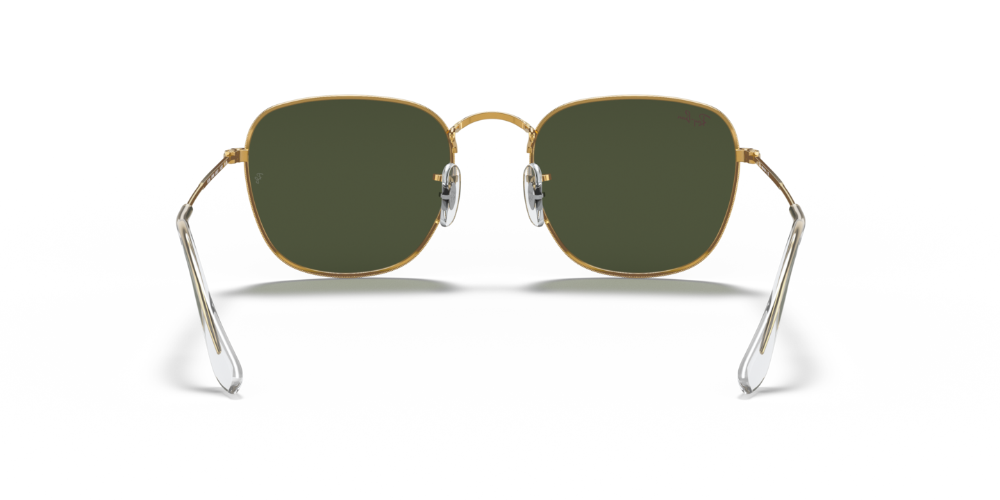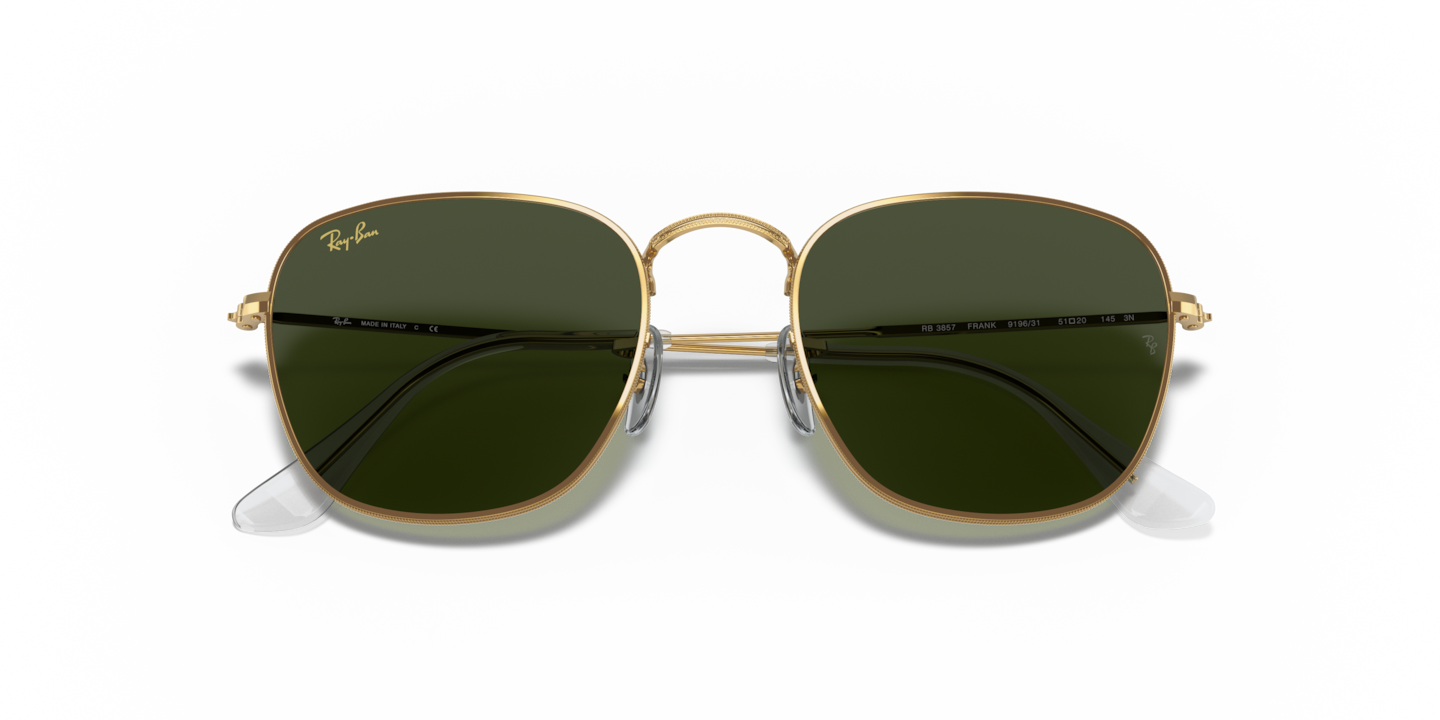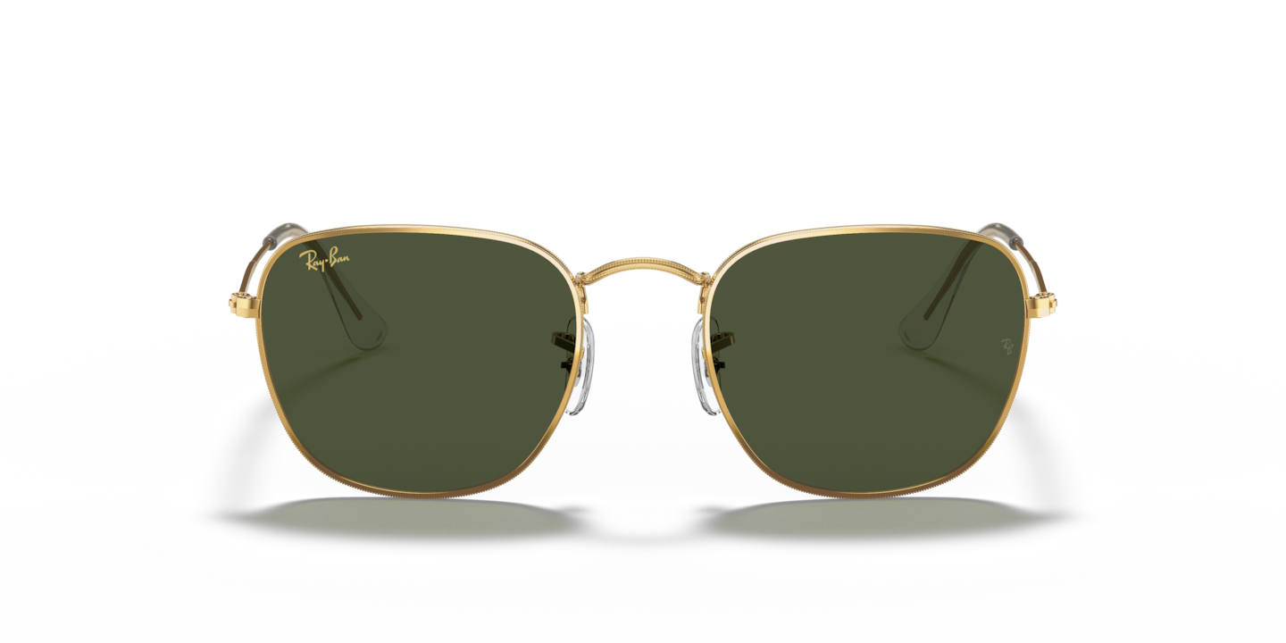Elevate your style quotient with Ray-Ban Frank sunglasses. These square-shaped glasses feature a polished gold metal frame that exudes elegance and sophistication. The classic green lenses with G-15 treatment provide superior clarity and color contrast, making them ideal for driving or other outdoor activities. These shades also feature the iconic Ray-Ban signature on the temples for a timeless look. Available with prescription lenses.