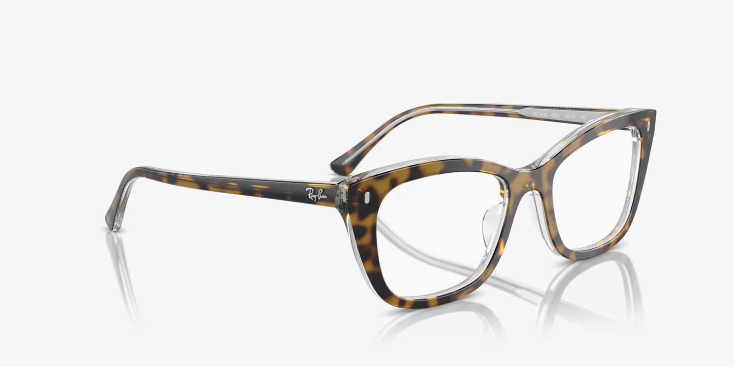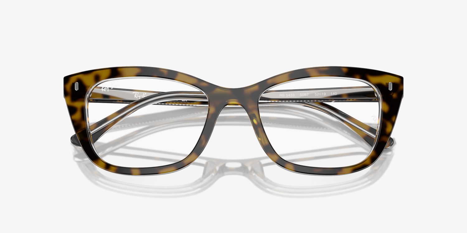 Elevate your style while optimizing performance with Ray-Ban RB5433 Optics. These glasses features a polished havana on transparent acetate frame in a unique pillow shape, offering a modern twist on a timeless design. Available with prescription lenses.