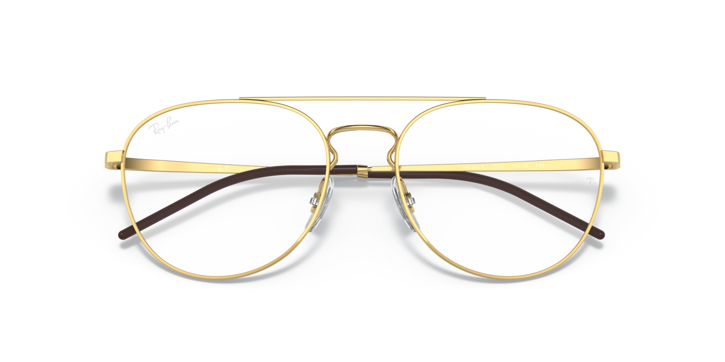 Elevate your fashion and optical standards with Ray-Ban RB6414 Optics. The polished gold metal frame, in a unique phantos shape, adds a touch of sophistication to any look. The key bridge design offers a modern twist on the traditional style. These eyeglasses are not only stylish but also versatile. Embrace the timeless appeal of Ray-Ban while staying ahead of the trends. Available with prescription lenses.