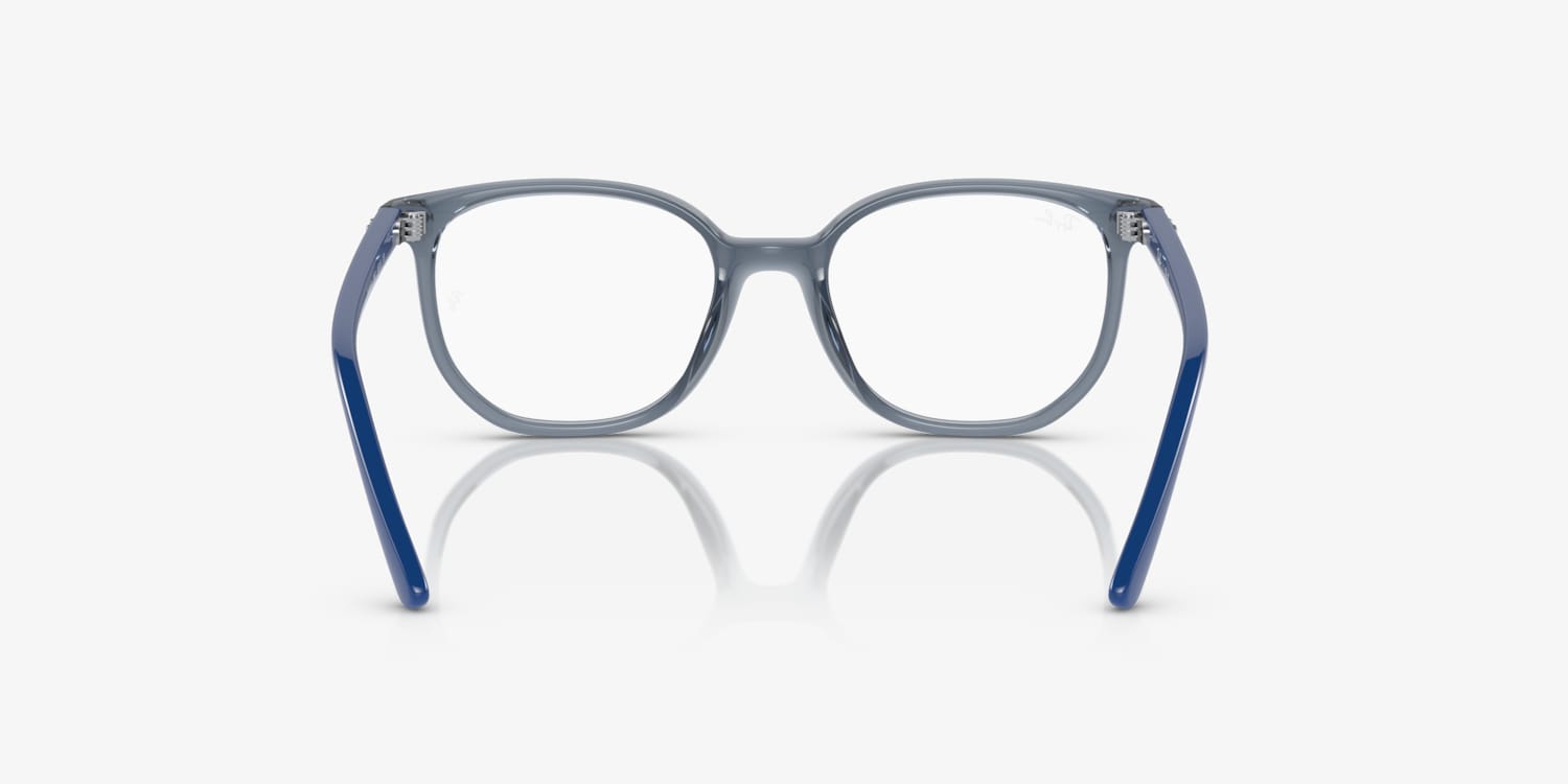 Ray-Ban Elliot Optics Kids eyeglasses are a trendy choice for children. The irregular shape of the frame adds a touch of fun and adventure to any outfit. Crafted from polished, transparent blue acetate, these glasses are not only stylish but also durable. These frames are designed to fit comfortably on little faces, making them ideal for everyday wear. Available with prescription lenses.